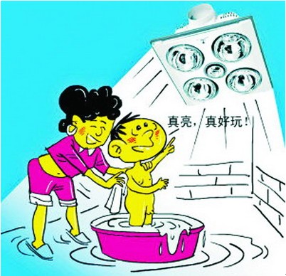 冬季洗澡時取暖,莊靜宜建議,在給孩子洗澡前,可先將浴霸打開讓浴室預熱,洗澡時把浴霸關掉?;蛘吒纱喔臑槭褂门L機。劉志雄主任提醒:由于好奇心驅使,兒童見到光亮的東西非常喜歡盯著看。但是人的視力功能要到6-8歲才能發(fā)育正常,在此之前,家長要注意保護孩子的眼睛,避免強光傷害。